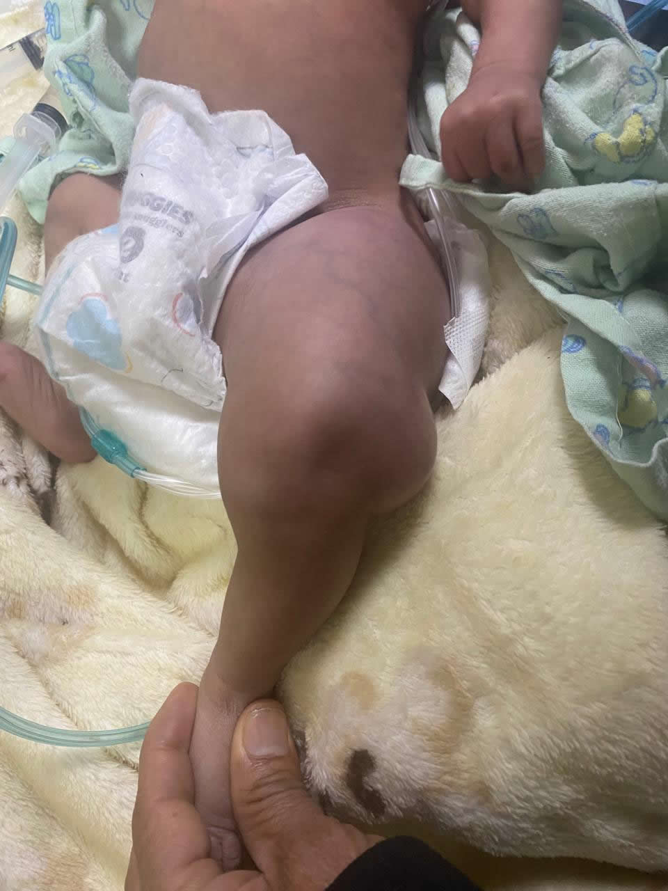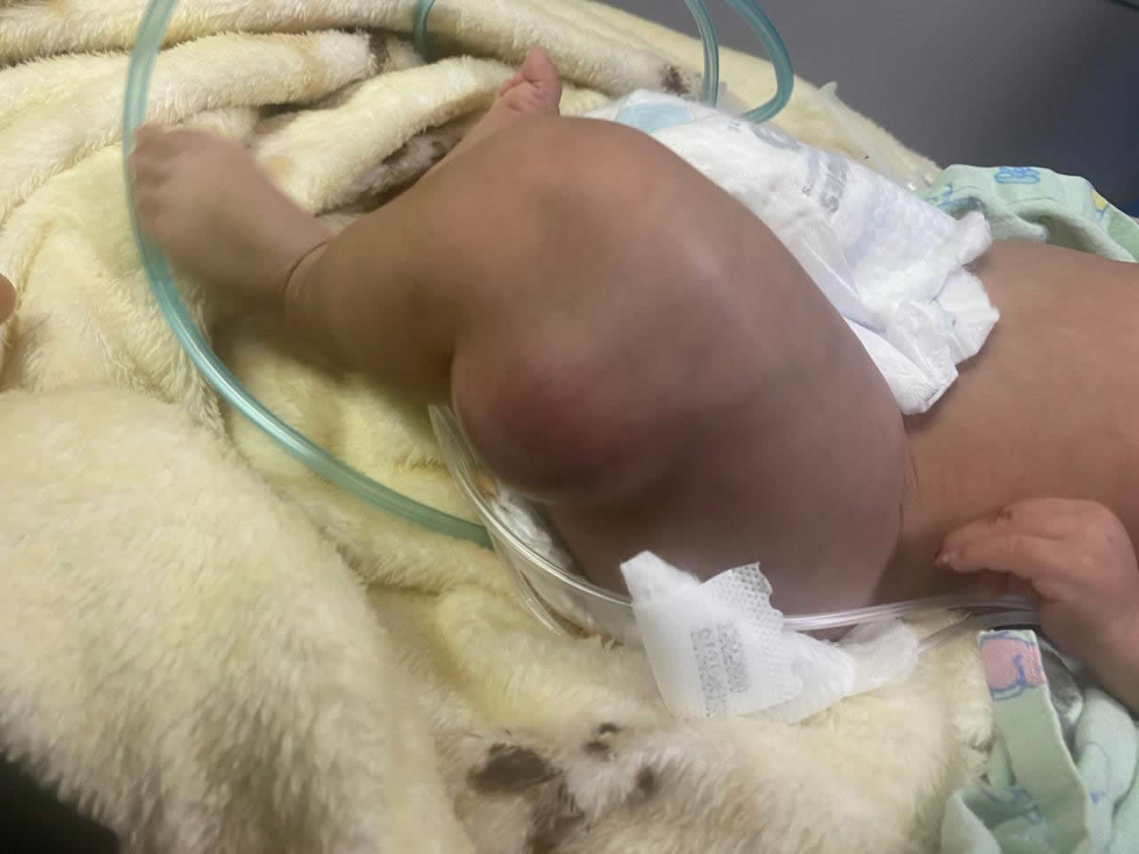 Paciente nace en hospital nacional, sin ningún problema al momento del parto, madre no refiere problema durante el embarazo, indica que al año de vida inicia con aumento de volumen del muslo izquierdo, observa cambio de coloración en el mismo, seis meses después dichos cambios inician a observarse a nivel del hombro izquierdo. No refiere trauma alguno, ni enfermedad severa que lo afecte en los dos años de vida.